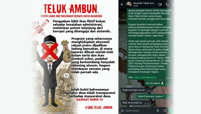 Tokoh Pemuda Desa Teluk Ambun alfa slam membantah keras pernyataan Geuchik Teluk Ambun yang sebelumnya menolak adanya dugaan program fiktif dalam pengelolaan Dana Desa.